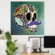 Ilustração desenhada à mão de um Dia do Crânio do Açúcar Morto a desportivar um bigode picante! Adicione texto para personalizar e você tem um poster incrível! Esta é a versão colorida - há também versões em preto, branco e vintage, portanto, veja todos os designs e produtos disponíveis!