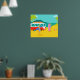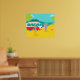 Todos os dias podem ser um dia na praia com este Poster de Surfista Retroativo. O estilo da década de 1960, design de arte minimalista apresenta uma adoradora divertida, adoradora do sol, casal à procura de emoções pronta para pegar uma onda. O cenário é um oásis tropical, ilha, com uma praia de areia ouro, balançando, palmeiras verdes, um espumante, um oceano azul de pavão, e um céu aqua. À distância, podemos ver uma ilha vulcânica teal, que está dormente por enquanto. De volta à praia, não podemos deixar de notar a doce viagem que trouxe o nosso casal para o destino dos seus sonhos. É uma carrinha moderna, vermelha e branca de meio século com uma prancha laranja e amarela amarrada ao topo. Embora não possamos ter certeza, é justo supor que o dentro da carrinha contém entalhe, carpete e o cheiro de incenso! O Surfer Dude e o Beach Babe têm curtições semelhantes a beijos solares, cabelos branqueados ao sol, e maiôs azuis com padrão tiki. O Surfer Dude está segurando uma prancha azul. Beach Babe está ao lado do seu prato rosa e de dois tons. Deitada perto, há uma bola de praia vermelha e branca, esperando para cumprir seu destino de verão. Pegue algumas ondas e compartilhe um pouco de amor com esta design de verão gatinha!