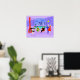 Este Poster estendido do Partido dos Cocktail Tropical está intoxicando em seus detalhes. O design de desenho apresenta o tipo de coquetel extremamente sofisticado que normalmente só é visto em filmes da década de 1960. Há uma sala de estar moderna de meio século cheia de festeiros desfrutando da decoração suja e roxa. Uma mulher adorável no uniforme de uma empregada francesa é carregando bandeja de martinis. Ela está ao lado de uma lareira de cone vermelha com um fogo rasteiro. No centro da sala, um casal atraente está descansando em cadeiras de ovo laranja. A mulher está vestindo um vestido brilhante e verde. O homem está vestindo um terno preto com uma gravata vermelha. Cada um segurando um martini. Outro casal está se aconchegando sob um chandelier amarelo, Sputnik. O ilustre cavalheiro branco está vestindo um terno azul, camisa azul clara e gravata vermelha. Ele também está segurando um martini em cada mão, mostrando ao mundo que seus dias de festa estão longe de terminar. O companheiro dele é loiro em forma de um vestido vermelho espantoso. Atrás desta cena, podemos ver pelo chão até paredes de vidro no teto. A cena ao ar livre apresenta uma piscina de natação redonda e turquesa. Podemos ver a silhueta roxa de uma mulher mergulhando suas pernas na água. Entre paredes roxas e pedras, há silhuetas de palmeiras. As silhuetas de partidários dançantes e falantes também são visíveis. Se há uma coisa que isso prova, é que, enquanto as pessoas que vivem em casas de vidro não deveriam jogar pedras, elas deveriam definitivamente fazer festas!
