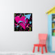Este poster retrorreflector apresenta uma pintura colorida com um coração cor-de-rosa e uma seta azul sobre um fundo preto.