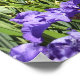Ametyst Purple Irises abunda neste jardim, com uma sugestão de oranias e margaridas brancas... tudo sob um belo céu azul com um banco convidativo... faz você só querer sentar lá ao lado deles, não é?
