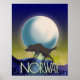 Impressão de Poster do Lobo-da-Noruega de um Lobo bonitinho, mas assustador, andando em frente a um lindo e grande Lua de cheio.
