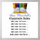 Este foi um grande sucesso com meus amigos e clientes professores junto com meus outros posters de professores, então eu estou oferecendo várias maneiras diferentes para o novo ano escolar. Basta digitar sobre cada linha para adicionar suas regras. Elimine/diminua o tamanho de alguns textos. Varie as cores por regra. Divirta-se com isso. É metade da diversão do Zazzle. Se sua escola está interessada em comprar isso como regras para a escola, por favor diga aos seus administradores que Zazzle oferece grandes descontos de quantidade, e muitos de meus clientes estão felizes em usar isso diariamente. Muito obrigado e, por favor, transmita o meu endereço de loja aos amigos... Obrigado por estar aqui, e por favor visite frequentemente Sharon Rhea Ford (NBCT - Arte) www.zazzle.com/sharonrhea* (Visite a minha escola - Seção de Professores para mais e produtos correspondentes também!) ...