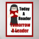 Design gráfico de uma garota lendo um livro do artista/designer Charmaine Paulson em uma poster. O texto diz: "Hoje é leitor, amanhã é líder". ©2008charmanepaulson