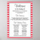 Este "Programa de Casamento Enquadrado por Stripes Vermelhas/Brancas" traz graça e estilo à sua cerimônia de casamento. Este poster do programa foi projetado para ajudar seus convidados a acompanhar o processo. Peça hoje!