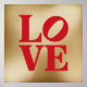 Este trabalho de arte é um Poster de amor ao quadrado da moda. O poster de arte e seu design quadrado podem ajustado convenientemente em muitos espaços. Esta poster apresenta uma design gráfica minimalista que mostra a palavra LOVE em letras grandes e vermelhas em um fundo de ouro metálico. As letras são ousadas, sans-serif e espaçadas uniformemente. O fundo dourado tem acabamento de metal escovado texturizado com sutis variações no tom dourado, dando-lhe uma aparência luxuosa e premium. A imagem é quadrada no formato e tem bordas nítidas onde as letras vermelhas correspondem ao fundo dourado.