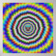 Uma imagem fractal psicodélica colorida com um design circular opticamente desafiador em vermelho azul amarelo e turquesa. Com Inseto como espaço reservado para sua própria imagem. Além dos posters, esse design também está disponível na maioria dos outros produtos.