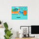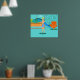 Todos os dias podem ser um dia na praia com este Poster do Retro Surfer Dude. Ao estilo de 1960, design de arte minimalista apresenta um cara louro, loiro e surfista solto pronto para pegar uma onda. Nosso surfista ajustado está olhando para o oceano através das portas de vidro deslizantes de sua praia em casa. Ele está parado em sua sala de estar colorida. Podemos ver um aqua e turquesa, muro de pedra e cadeira de laranja moderna e meio século. No lado oposto da porta de vidro, podemos ver um pátio. Além disso, há uma praia ouro, arenosa, balançando palmeira, espumante, oceano azul de pavão, e um céu aqua. À distância, podemos ver uma ilha vulcânica teal, que está dormente por enquanto. O Surfer Dude está segurando uma prancha azul de surfe e vestindo shorts de conselho azuis, com padrão tiki. Pegue algumas ondas e compartilhe um pouco de amor com esta design de verão gatinha!