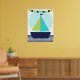 Um excelente náutico de design de berçário de veleiro para quarto de bebê ou quarto de criança mais velha mostra um veleiro com velas verdes e lacrimogêneas, uma bandeira azul de verde limão e marinho e água com faixa de gesso!