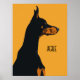 Este poster apresenta uma ilustração de um jovem Doberman sobre fundo amarelo brilhante com o texto padrão personalizável "ágil". Este é um design excelente para donos de Doberman, donos de cães e amantes de cães.