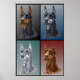 As cores do Doberman são feitas no estilo da pop e mostram as 4 cores distintas do pincher Doberman. Preto, azul, prateado e vermelho. Computação de Kathie Miller.