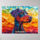 Este é um retrato colorido abstrato de um cão da raça Doberman no estilo de arte de coloração de papel. É uma poster para amantes de cães e donos de Doberman.