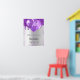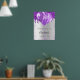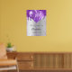 Um poster de boas-vindas para uma menina e glamourosa Doce 16, 16ª festa de aniversário. Um fundo prateado falso decorado com púrpura púrpura de brilho, pintura pingando, balões. Personalize e adicione um nome e uma idade. Traseira: sem design