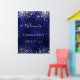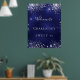 Um poster de boas-vindas para uma menina e glamourosa Doce 16, 16ª festa de aniversário. Um fundo azul marinho com brilhos elegantes de cintilação prateada. A cor azul é irregular. Personalize e adicione um nome. Cartas brancas. Traseira: sem design