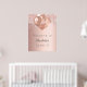 Um poster de boas-vindas para uma festa de aniversário giro e glamourosa Doce 16 (ou qualquer idade). Um fundo metálico de aspecto rosa dourado, decorado com pingos de falso brilho, aparência de pingar, balões. Personalize e adicione um nome e uma idade. Cinzas escuras. Traseira: sem design