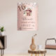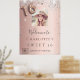 Um poster de boas-vindas para uma menina e glamourosa Doce 16, 16ª festa de aniversário. Um fundo metálico de aspecto rosa dourado falso, decorado com pó falso de prata brilhante. Personalize e adicione uma foto, nome e Instagram #hashtag. O número 16 é escrito com uma fonte no estilo do balão. Traseira: sem design