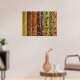 Esse poster apresenta uma variedade de todo tipo de doce em todas as cores do arco-íris (amarelo, chocolate, marrom, laranja, vermelho, verde, azul, branco e ouro) para formar um padrão de abstrato de rega bucal.