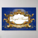 Doces Reais & Sinal de Churrasco de Bebê com Moldura Dourada Elegante no Topo de um Fundo Azul Real. Perfeito para Bufês de Doces Reais
