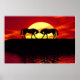 dois cavalos antes do pôr do sol, paisagem vermelha e agradável