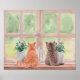 Poster Dois Gatos nas Flores de Sereno Cênico da Janela