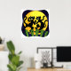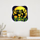 Dois gatos pretos sentados com um sol amarelo gigante no fundo. Esta design parece realmente eficaz nesta Poster