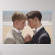 Realista pintura de dois belos gay no dia do casamento na praia. Feito com algoritmos generativos e Photoshop. Este é outro design de 100% original de Hamster de Combate.