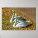 Dois jovens cisnes na luz do sol do outono, no lago Roath Park, Cardiff, País de Gales