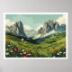 Descubra a beleza dos Dolomites com este poster de viagens retrô/cartão postal. Apresentando picos irregulares e vales exuberantes, este design captura paisagens atordoantes da Itália. Excelente para amantes da natureza e fãs da arte safena.