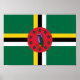 A bandeira Dominica é uma bandeira com um emblema vermelho circular com o papagaio Sisserou e 10 estrelas. As cores usadas na bandeira são vermelho, verde, amarelo, branco, preto, marrom, roxo. A proporção da bandeira Dominica é de 1:2. A bandeira da Domínica foi adotada em 1990. A primeira utilização do atual design de bandeira foi em 1978. A última mudança para a atual design da bandeira Dominica foi em 1990.