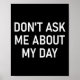 Poster Don't Ask Me About My Day, Funny, Jokes, Sarcastic