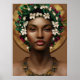 Linda mulher afro-americana forte com coroa de flores. A IA gerou trabalho de arte.