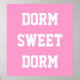 Dorm Sweet Dorm em uma poster para a Sala Dormitória da Faculdade em rosa quente com letras retrorreflectoras brancas. Há itens correspondentes, um travesseiro decorativo, uma lâmpada de mesa, etc.