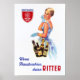 Restaurado! Reprodução de alta resolução, Photoshop apontado para impressões nítidos, retocado digital e restaurado para lágrimas, manchas e elementos faltando. Dortmunder alemão RITTER BIER Retro Beer Advertisement Poster