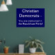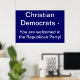 Num contexto marinho, a carta branca proclama: "Democratas-Cristãos - São bem-vindos no Partido Republicano!" A Plataforma do Partido Democrático havia removido "Deus" de sua plataforma. Levou três votos com "vaias" alto para finalmente adicionar "Deus" de volta aos programas. Isso reflete as suas convicções e valores - e o VOSSO VOTO? IowaRepublican
