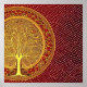 Árvore detalhada de vida feita de ouro sobre fundo ondulado vermelho. Criado com o uso do software AI.