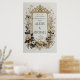Um quadro ilustrado de ouro ornamentado com rosas de ouro e marfim e sotaques de cinza, adorável para um evento de conto de fadas.