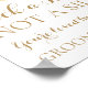 Use a nossa folha de ouro falso e o cartaz de casamento da flor branca "Escolha um assento" para que seus convidados saibam que eles podem sentar em qualquer lugar na sua cerimônia de casamento. O texto é perfeitamente personalizável. Use a ferramenta "Personalizar este modelo" do Zazzle para inserir suas próprias informações. Se você precisar alterar o posicionamento das caixas de texto, a cor ou o tamanho da fonte, basta clicar no botão "Clique para personalizar mais" para alterar essas coisas. Certifique-se de verificar nossa grande seleção de itens coordenadores navegando na coleção Dourada e White Floral Wedding!