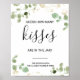 Esse palpite de ouro de quantos beijos o poster de jogos de chá de panela é perfeito para um chá de panela elegante. O design apresenta uma folhagem verde de aqualyptus com dourado confetti.