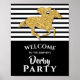 O poster de boas-vindas do partido Derby - INSTANTÂNEA DOWNLOAD e/ou IMPRESSO - apresenta um falso cavalo de corrida dourado em faixas pretas e brancas com os detalhes do seu partido em letra chic. CORRESPONDENTE a itens na nossa coleção.