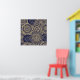 Design de coleção de mandalas tribais elegantes, simples e esbranquiçadas de ouro esbranquiçado, floral de henna indiana cinzenta, recheado de pontos, formas geométricas, linhas, listras, triângulos, círculo de flores, ouro amarelo, pontos brilhantes, imagem mística abstrato, sobre um fundo de cor marinho-azul. Uma ilustração mística, asteca, decoração lux, azul-marinho e ouro, impressão de imagem.