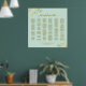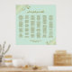 Este lindo quadro de assentos de casamento apresenta texto dourado sobre um fundo cor verde de menta pálida com atribuições de assentos para até 250 convidados. Ele apresenta um simples na moda e elegante design com filigre de ouro decorativo de folha fina nos cantos. O título está escrito em caligrafia de script de rico e diz: Por favor, encontre sua mesa.
