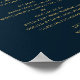 Poster Dourado menu de janto de casamento. Marinho elegan