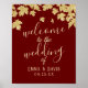 O Dourado outono deixa o sinal de boas-vindas do Casamento outono Vermelho Borgonha.