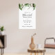 Este sinal de boas-vindas do janto de ensaio verde-tropical de ouro é perfeito para um ensaio de casamento moderno. O design apresenta ouro de aquarela pintada à mão e palmeiras verdes e folhas de bananeiras com flores cor-de-rosa bem organizadas em belos buquês.