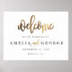 Este é um belo retrato poster bem-vindo sinal de casamento com texto escrito em ouro