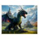Um poster brilhante do trabalho de arte de "Dragão Arco-Íris em uma Terra Mística" do Planetário Prankster.