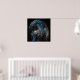 Poster Dragão azul Steampunk com asas metálicas arte AI