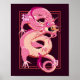 Os dragões chineses são símbolo mítico de uma sorte e poder (os dois símbolos nesta design). São também um dos sinais do zodíaco chinês. Design ilustração gráfica de um dragão cor-de-rosa no Poster para fãs de dragões e amantes da mitologia chinesa.