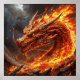 Dragão feroz e sinuoso envolto em chamas. Suas escamas são detalhadamente intricadas, mostrando uma mistura de vermelhos profundos e laranjas ígneas que sugerem calor intenso. Os olhos ferozes do dragão brilham intensamente, capturando um senso de poder e ameaça. Fumos de fumaça e brasas giram em torno dele, contribuindo para uma atmosfera geral de caos e intensidade. O fundo apresenta nuvens escuras e tempestuosas, adicionando ao efeito dramático. Essa criatura formidável parece estar emergindo de uma paisagem ígnea, dando uma impressão de dominância e força bruta.