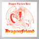 Poster impressionante de uma senhora corajosa e bonita com sua amiga Dragão. Tinta vermelha vibrante sobre um fundo branco estrelado com letras coloridas ferozes declarando que a senhora é amiga de todos os dragões.